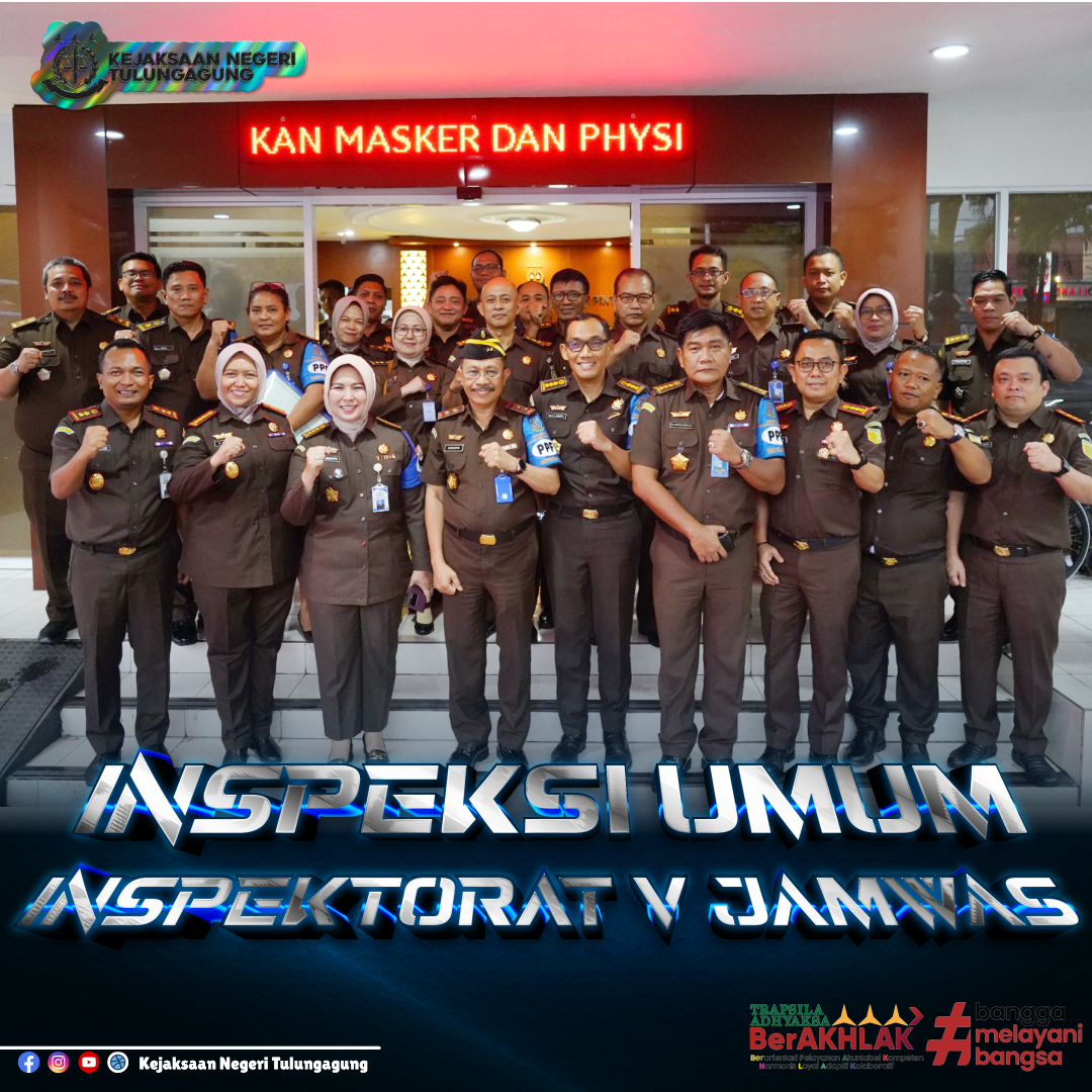 Kejaksaan Negeri Tulungagung mengikuti inspeksi umum yang diselenggarakan oleh Inspektorat V Jaksa Agung Muda Pengawasan di Kejaksaan Negeri Kota Kediri, Rabu (24/1/2024). Inspeksi umum ini dilaksanakan untuk mengevaluasi kinerja dan pelaksanaan tugas Kejaksaan Negeri Tulungagung. #kejaksaanri #kejatijatim #kejaksaannegeritulungagung